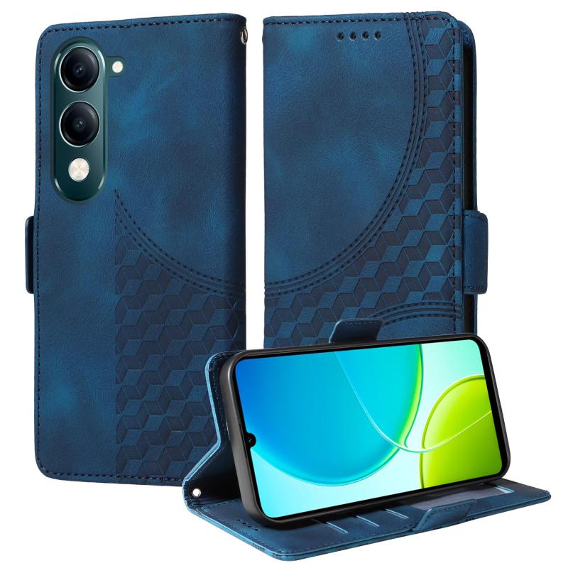Θήκη τηλεφώνου από δέρμα με ανάγλυφο ρόμβο και αστρικό σχέδιο για vivo Y29s 5G / Y04 4G (Πράσινο)