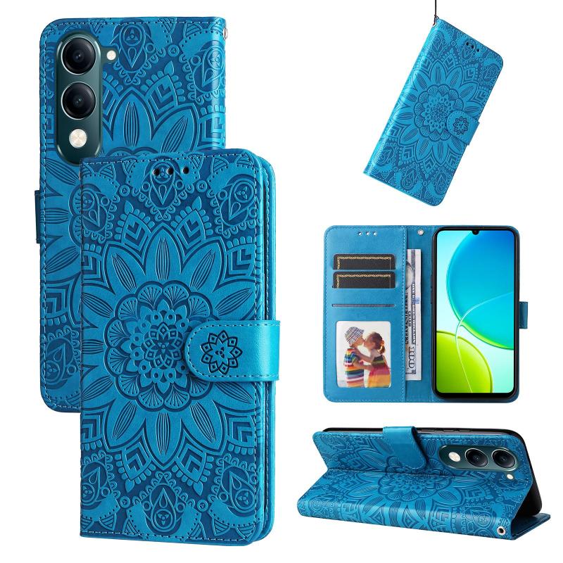 Θήκη τηλεφώνου δερμάτινη με ανάγλυφο ηλίανθο για vivo Y29s 5G / Y04 4G (Κόκκινο)