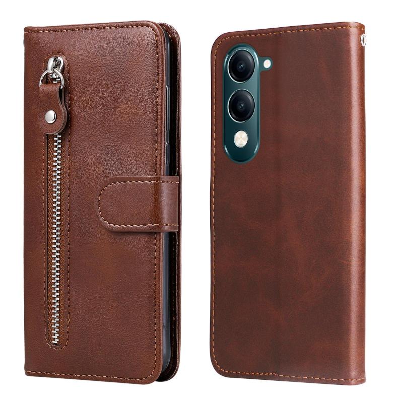 Θήκη τηλεφώνου από δέρμα με υφή μοσχαριού και φερμουάρ για vivo Y29s 5G / Y04 4G (Χρυσό ροζ)