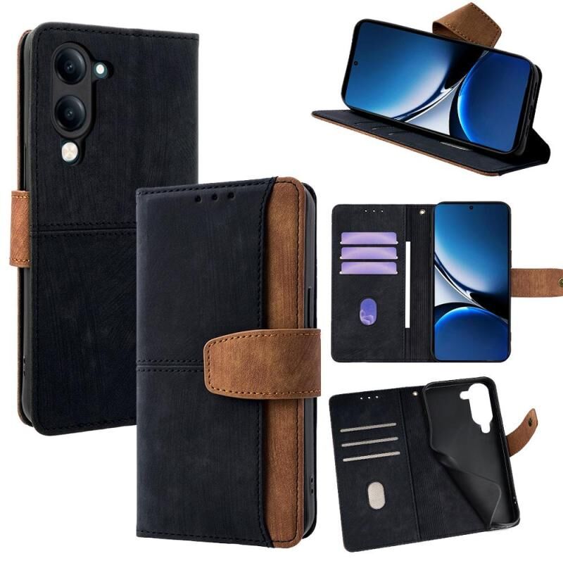 For vivo Y29s 5G / Y04 4G Global Color Stitching Skin Feel Leather RFID Blocking Phone Case(Black)