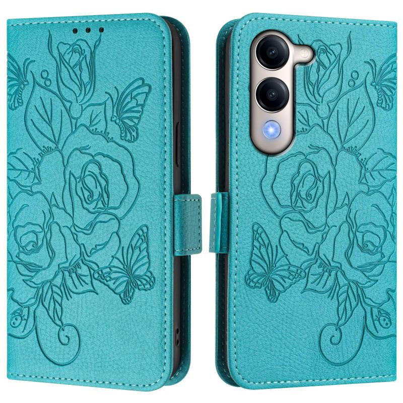 For vivo Y29s 5G / Y04 4G Global Embossed Rose RFID Anti-theft Leather Phone Case(Light Blue)