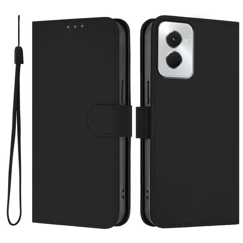 For vivo Y29S 5G / Y04 4G Global Skin Feel Solid Color Leather Phone Case with Lanyard(Black)