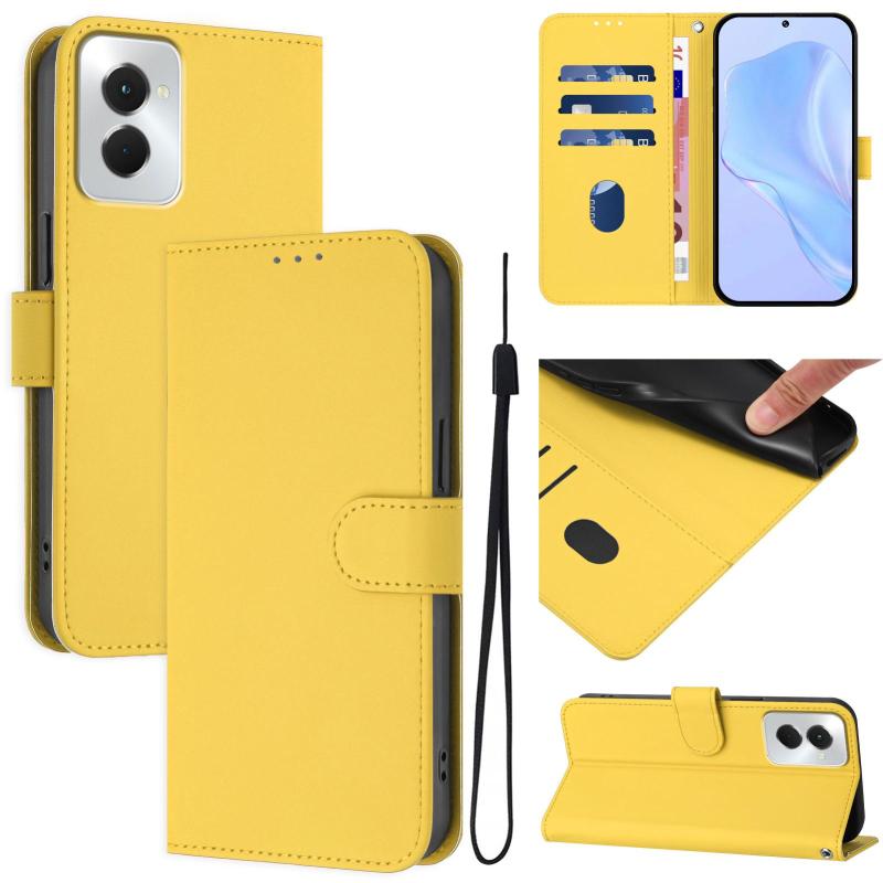 For vivo Y29S 5G / Y04 4G Global Skin Feel Solid Color Leather Phone Case with Lanyard(Lemon Yellow)