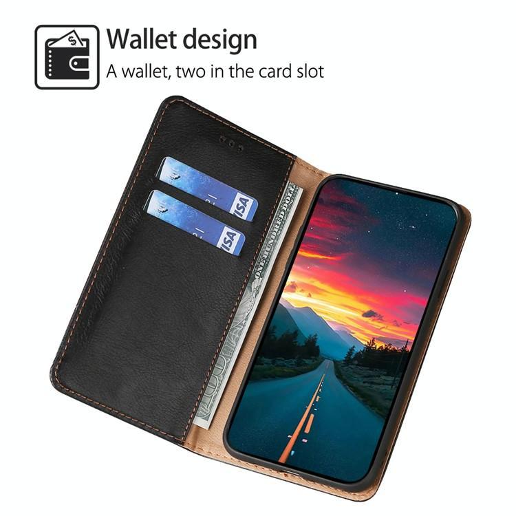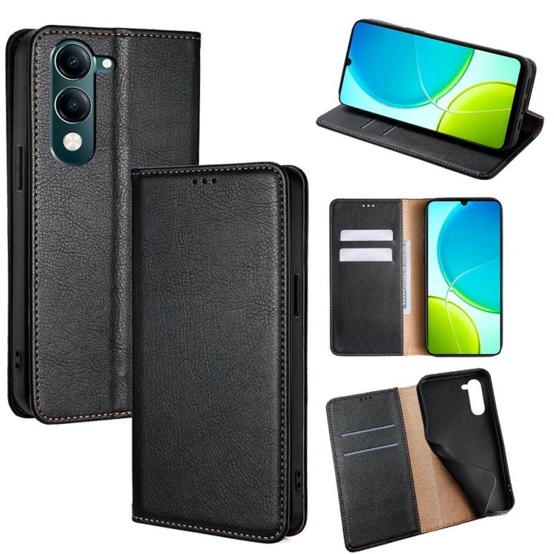 Θήκη τηλεφώνου από μαγνητικό δέρμα με γυαλιστερό λάδι και συμπαγές χρώμα για vivo Y29s 5G / Y04 4G (Μαύρο)