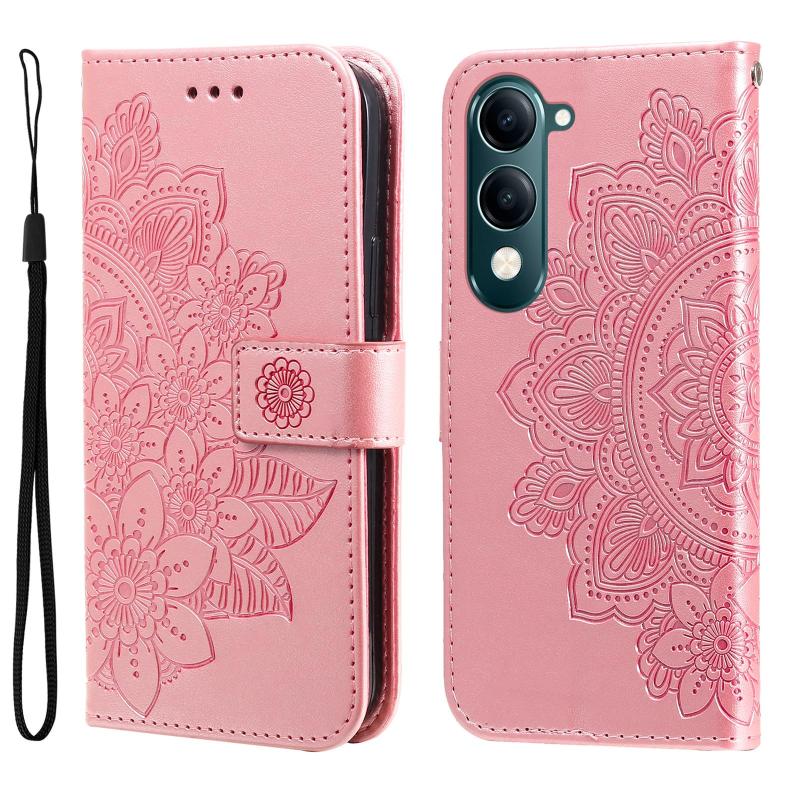 Θήκη τηλεφώνου από δέρμα με ανάγλυφα επτά πέταλα για vivo Y29s 5G / Y04 4G (Ανοιχτό Μωβ)