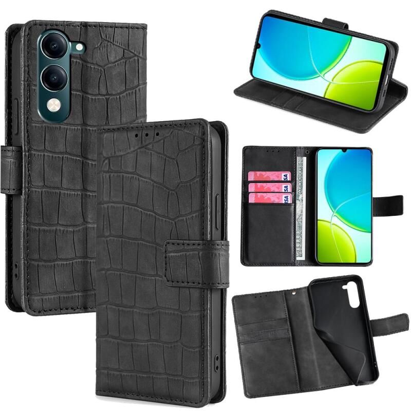 Θήκη τηλεφώνου από δέρμα με μαγνητικό κούμπωμα και υφή κροκόδειλου για vivo Y29s 5G / Y04 4G (Μαύρο)
