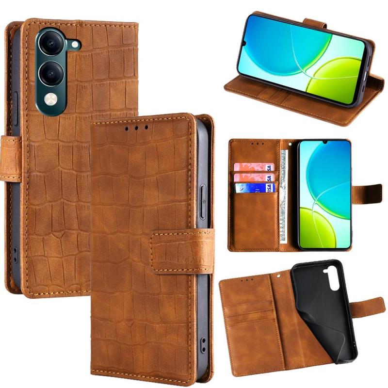 For vivo Y29s 5G / Y04 4G Skin Feel Crocodile Magnetic Clasp Leather Phone Case(Brown)