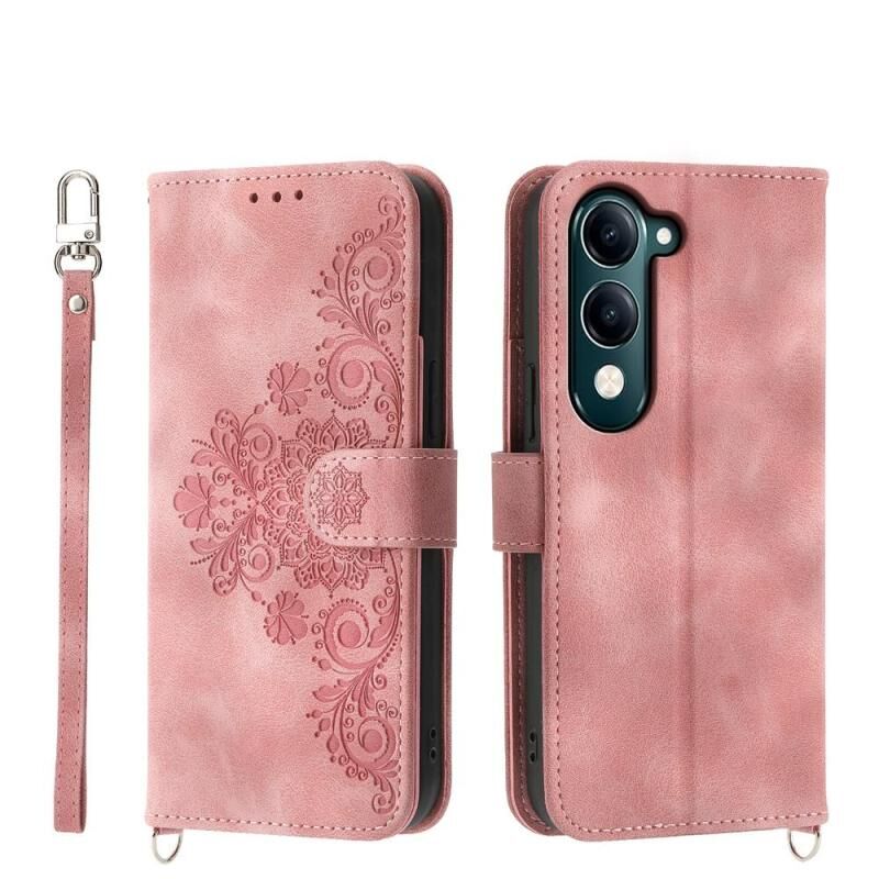 Θήκη τηλεφώνου από δέρμα με ανάγλυφα λουλούδια και υφή δέρματος για vivo Y29s 5G / Y04 4G (Μωβ)