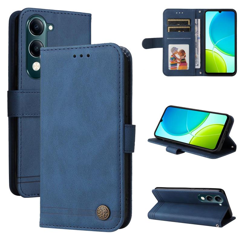 Θήκη τηλεφώνου για vivo Y29s 5G / Y04 4G με αίσθηση δέρματος, σχέδιο Δέντρο της Ζωής, μεταλλικά κουμπιά (Μπλε)