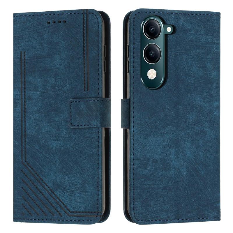 Θήκη τηλεφώνου από δέρμα με υφή και ραβδωτό σχέδιο για vivo Y29s 5G / Y04 4G με κορδόνι (Καφέ)