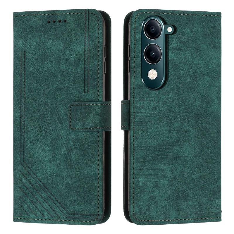 For vivo Y29s 5G / Y04 4G Skin Feel Stripe Pattern Leather Phone Case with Lanyard(Green)