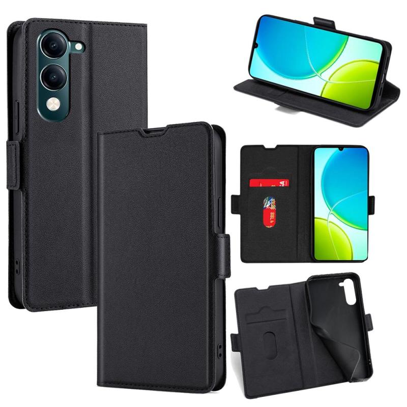 Θήκη τηλεφώνου από δέρμα με οριζόντιο άνοιγμα και λεπτό σχεδιασμό για vivo Y29s 5G / Y04 4G (Μαύρο)