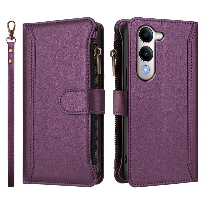 Για vivo Y29S 5G / Y04 5G Παγκόσμια θήκη δέρματος με μαγνητικό κλείσιμο, 9 υποδοχές καρτών και φερμουάρ με λουρί χειρός (Σκούρο Μπλε)