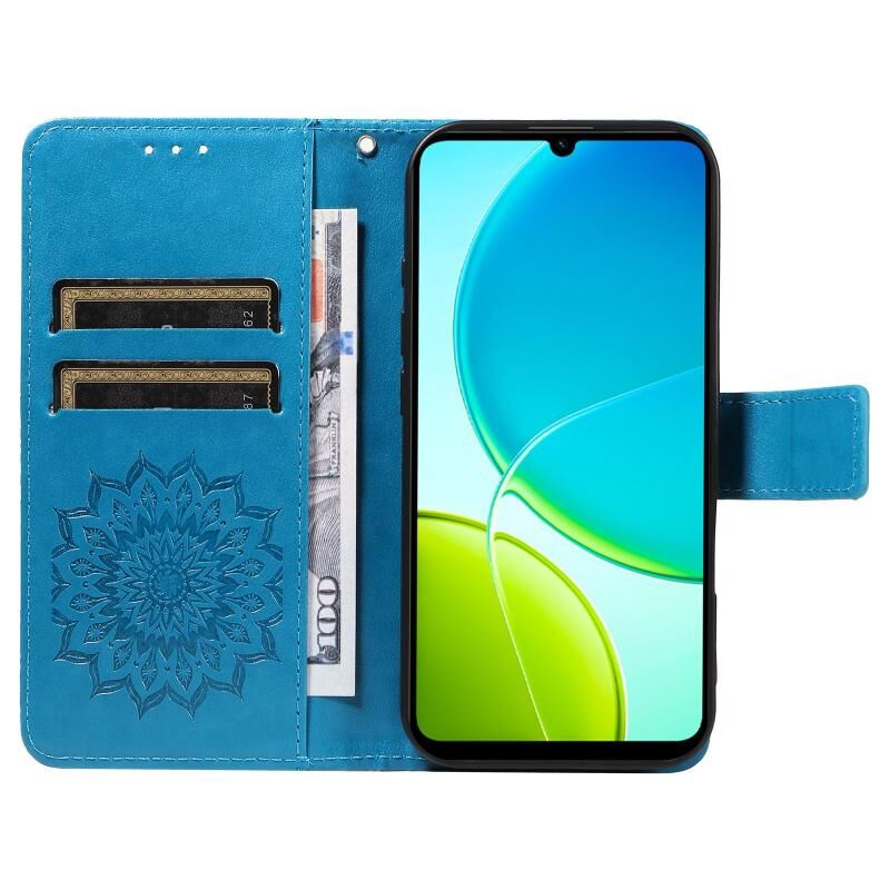 Θήκη τηλεφώνου από δέρμα με ανάγλυφο σχέδιο ηλίανθου για vivo Y29S 5G / Y04 (Μωβ)