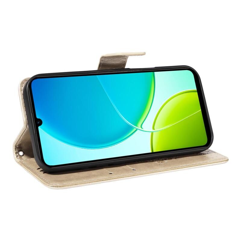 Θήκη τηλεφώνου από δέρμα με σχέδιο ανάγλυφου δέντρου & γάτας για vivo Y29S 5G / Y04 (Ροζ)