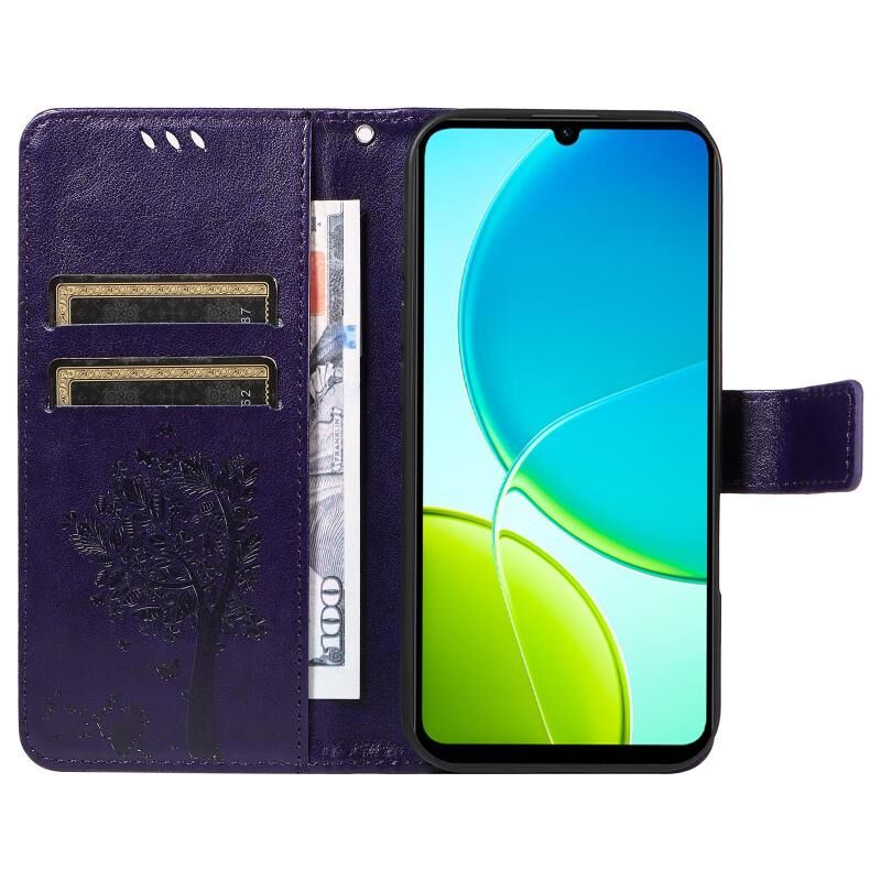 Θήκη τηλεφώνου από δέρμα με σχέδιο ανάγλυφου δέντρου & γάτας για vivo Y29S 5G / Y04 (Ροζ)