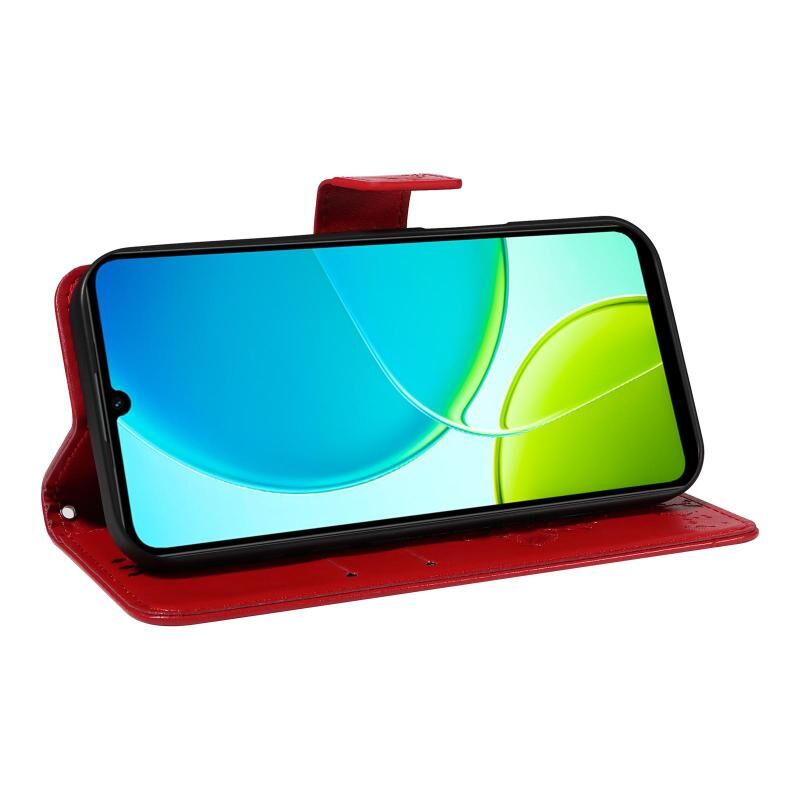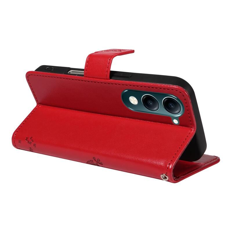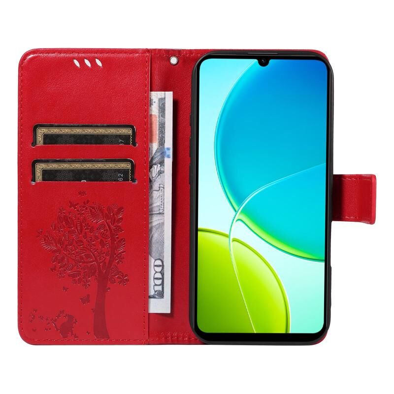 Θήκη τηλεφώνου από δέρμα με σχέδιο ανάγλυφου δέντρου & γάτας για vivo Y29S 5G / Y04 (Ροζ)