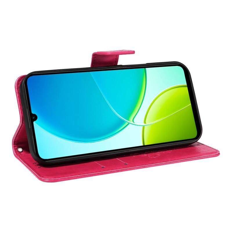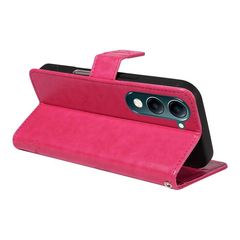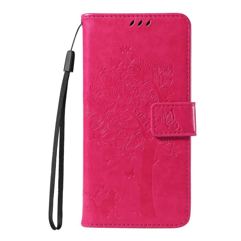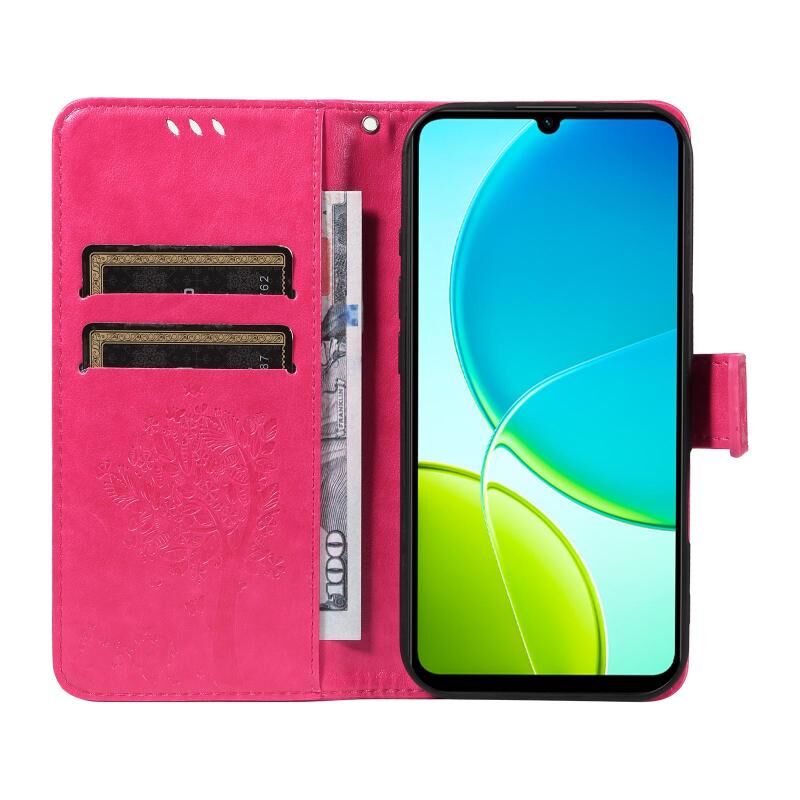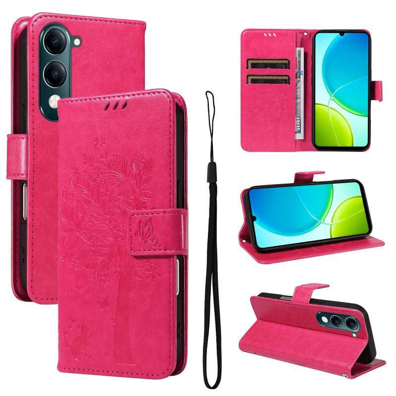 Θήκη τηλεφώνου από δέρμα με σχέδιο ανάγλυφου δέντρου & γάτας για vivo Y29S 5G / Y04 (Ροζ)
