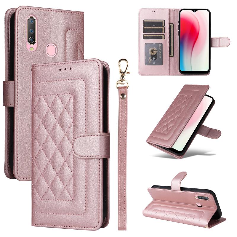 For vivo Y3 / Y17 Diamond Lattice Leather Flip Phone Case(Rose Gold)