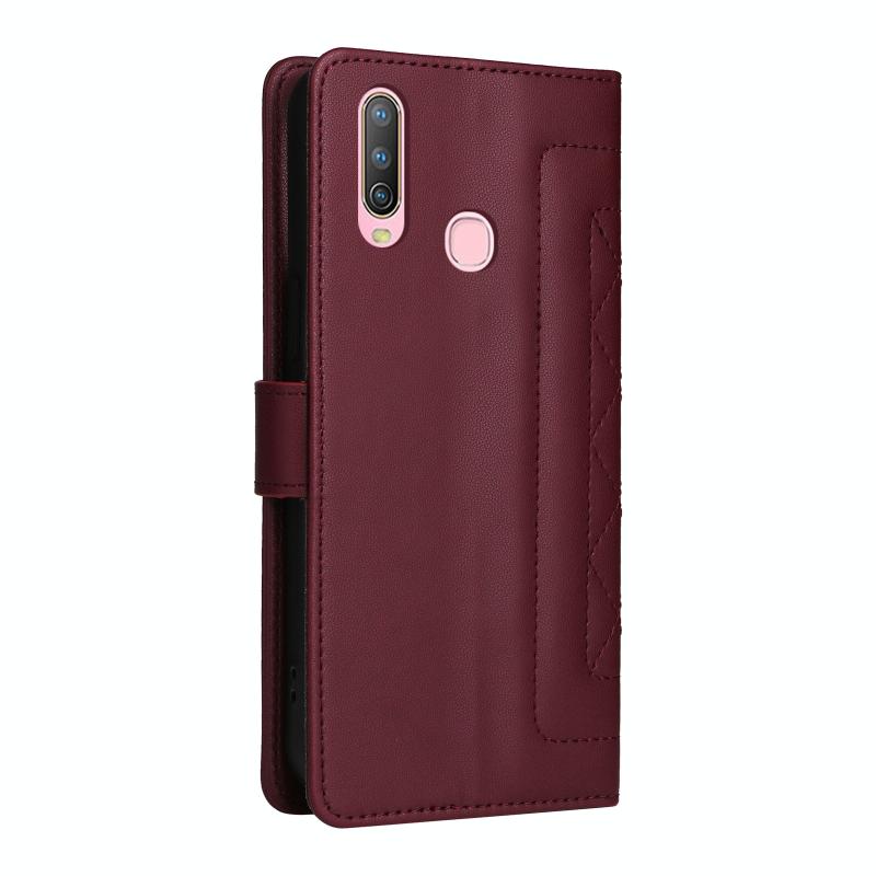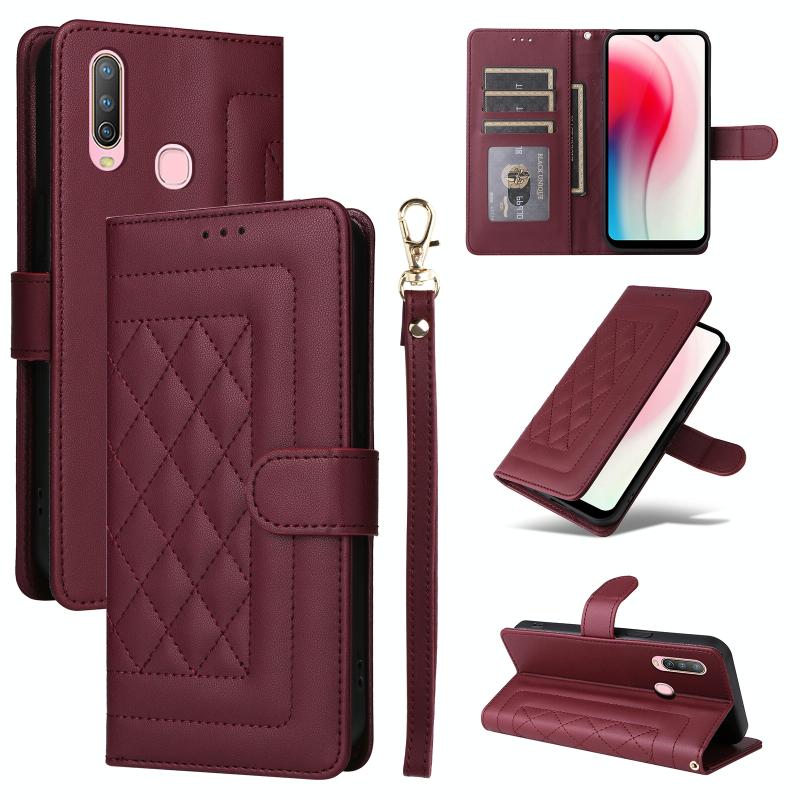 For vivo Y3 / Y17 Diamond Lattice Leather Flip Phone Case(Wine Red)
