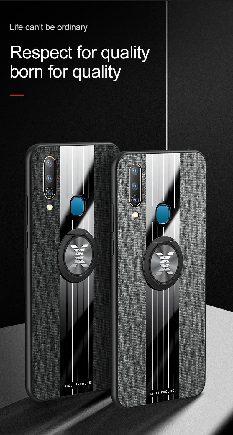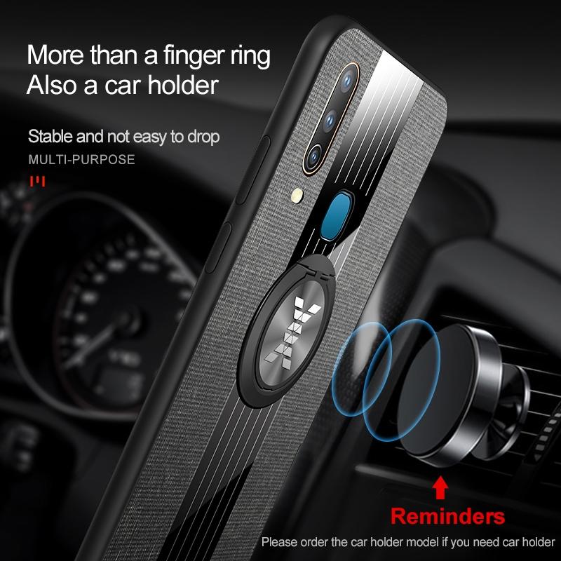 Θήκη προστασίας TPU με υφή ραφής, αντικραδασμική για Vivo Y3 / Y17 με βάση στήριξης δακτυλιδιού (Κόκκινο) (Κόκκινο)