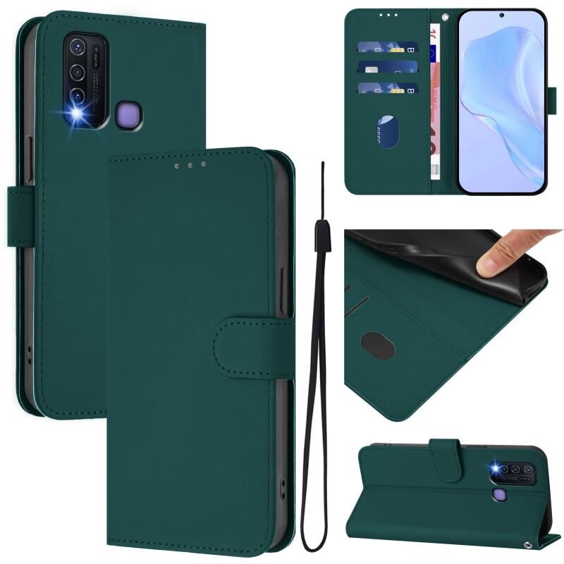 Θήκη τηλεφώνου από δέρμα με συμπαγή χρώματα και κορδόνι για vivo Y30 4G (Καφέ)