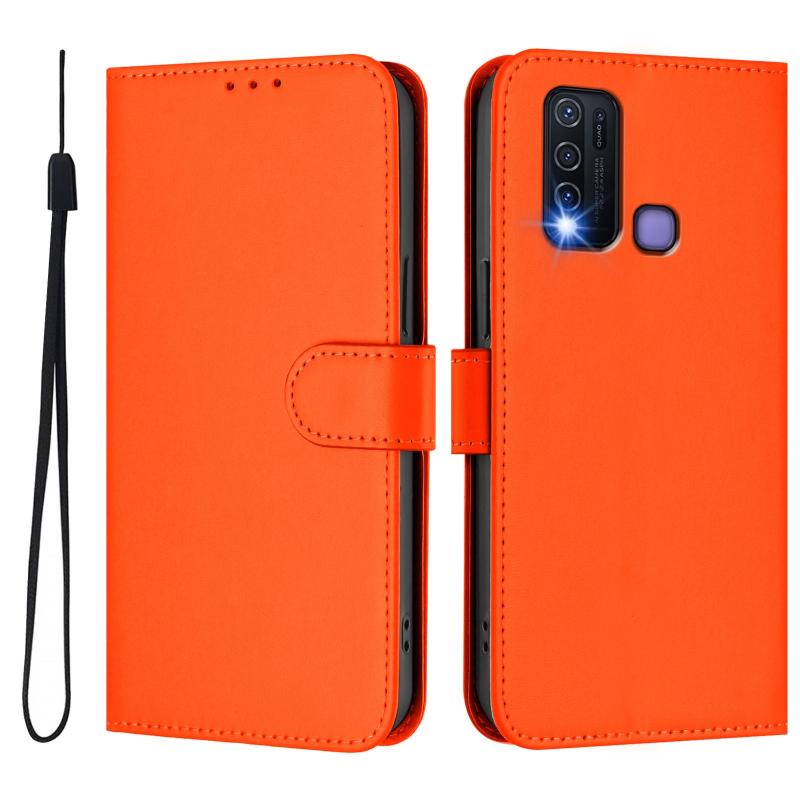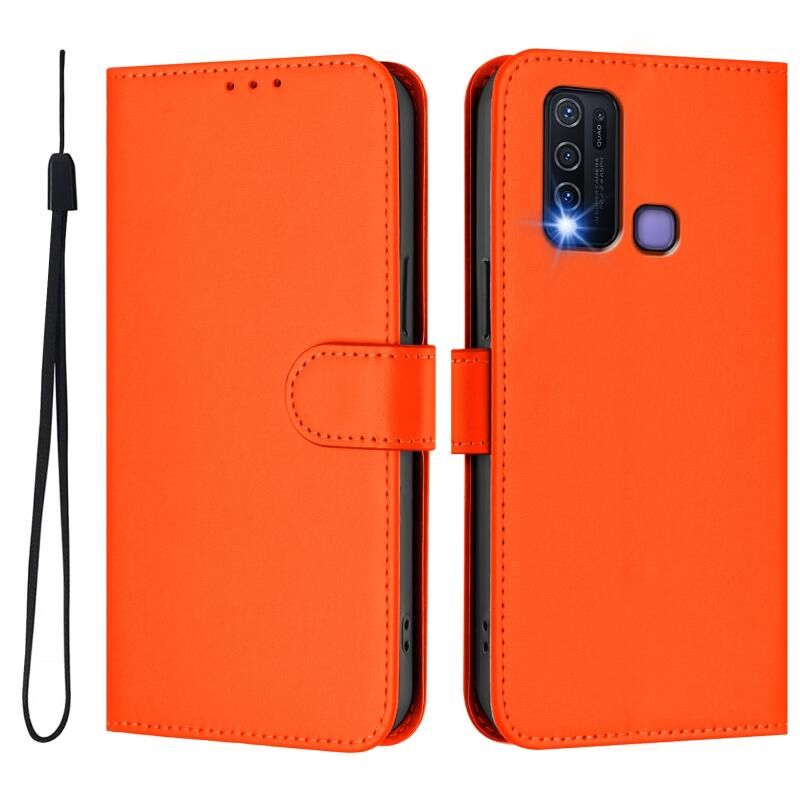Θήκη τηλεφώνου από δέρμα με συμπαγή χρώματα και κορδόνι για vivo Y30 4G (Καφέ)