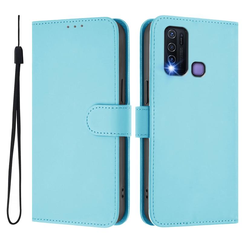 Θήκη τηλεφώνου από δέρμα με συμπαγή χρώματα και κορδόνι για vivo Y30 4G (Καφέ)