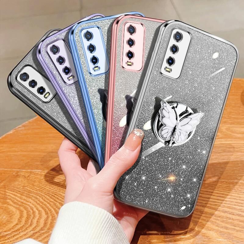 Για το vivo Y30 / Y20 Επιμεταλλωμένο διαβάθμιση Glitter πεταλούδα κάτοχος TPU τηλέφωνο υπόθεση (ροζ)