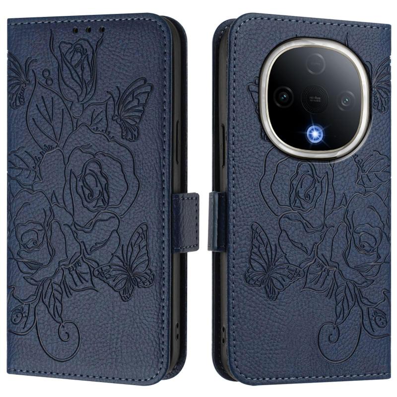 Θήκη τηλεφώνου δερμάτινη με ανάγλυφο σχέδιο τριαντάφυλλου και προστασία RFID κατά της κλοπής για vivo Y300 5G (Πράσινη)