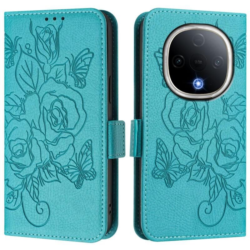 Θήκη τηλεφώνου δερμάτινη με ανάγλυφο σχέδιο τριαντάφυλλου και προστασία RFID κατά της κλοπής για vivo Y300 5G (Πράσινη)