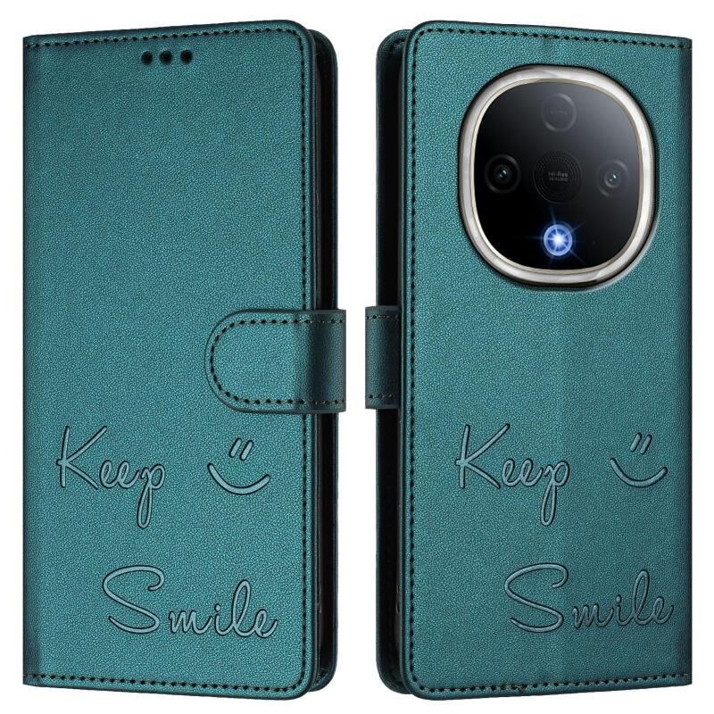 Θήκη τηλεφώνου από δέρμα με ανάγλυφο χαμόγελο RFID για vivo Y300 5G (Μέντας Πράσινο)