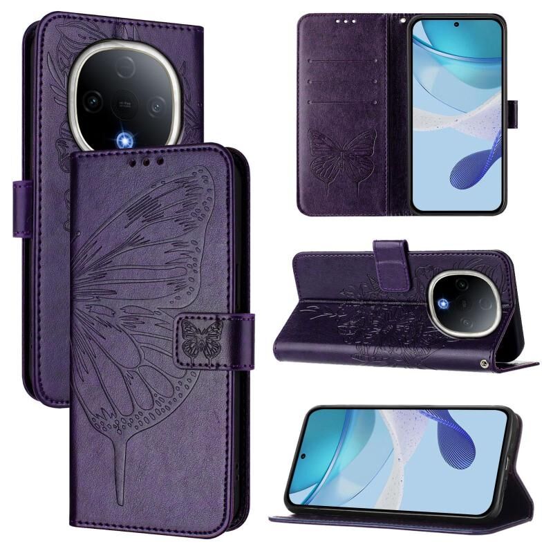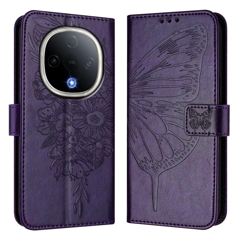 For vivo Y300 Embossed Butterfly Leather Phone Case(Dark Purple)