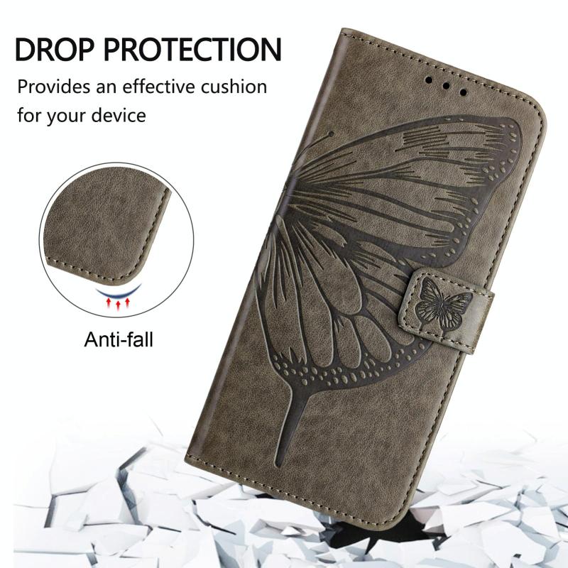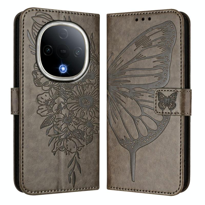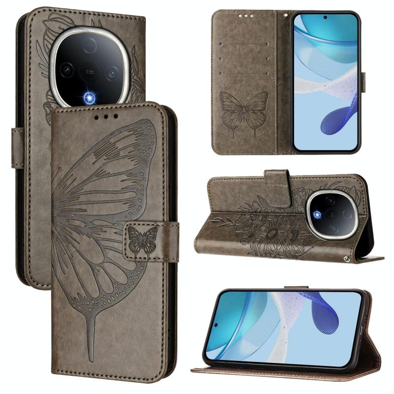 For vivo Y300 Embossed Butterfly Leather Phone Case(Grey)