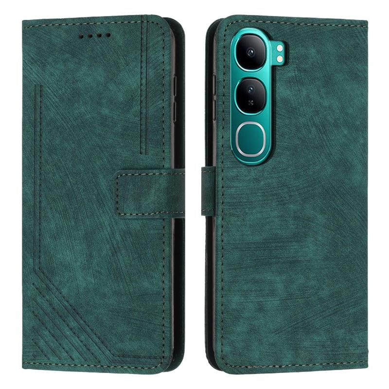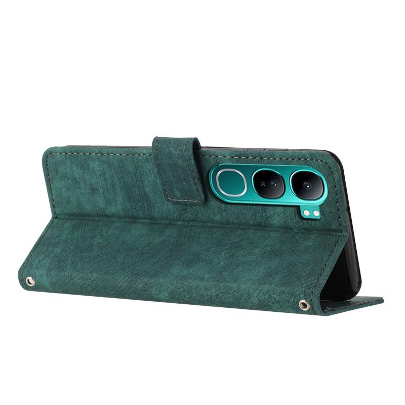 For vivo Y300 Global / V40 Lite IDN Skin Feel Stripe Pattern Leather Phone Case with Lanyard(Green)