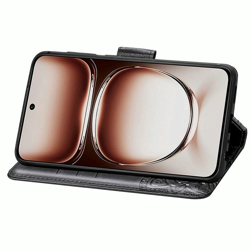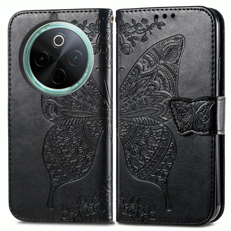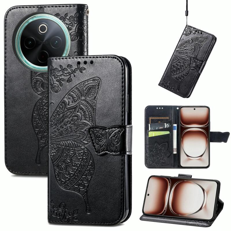 Θήκη δερμάτινη με ανάγλυφο σχέδιο πεταλούδας και λουλουδιών για vivo Y300 Pro (Μαύρο)
