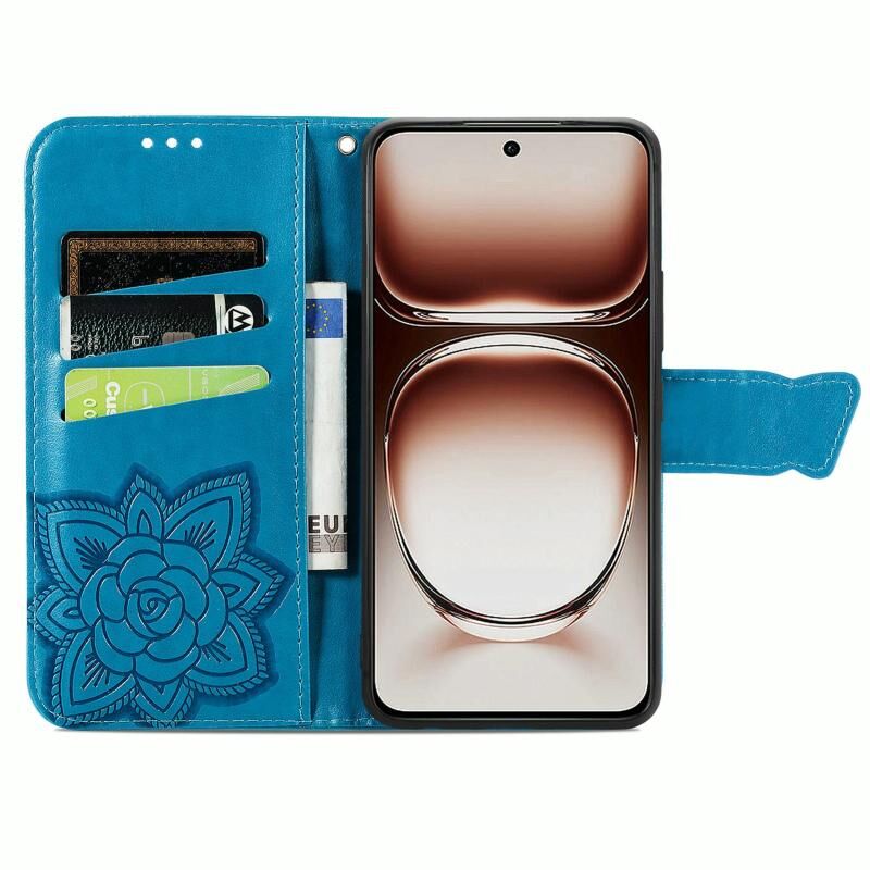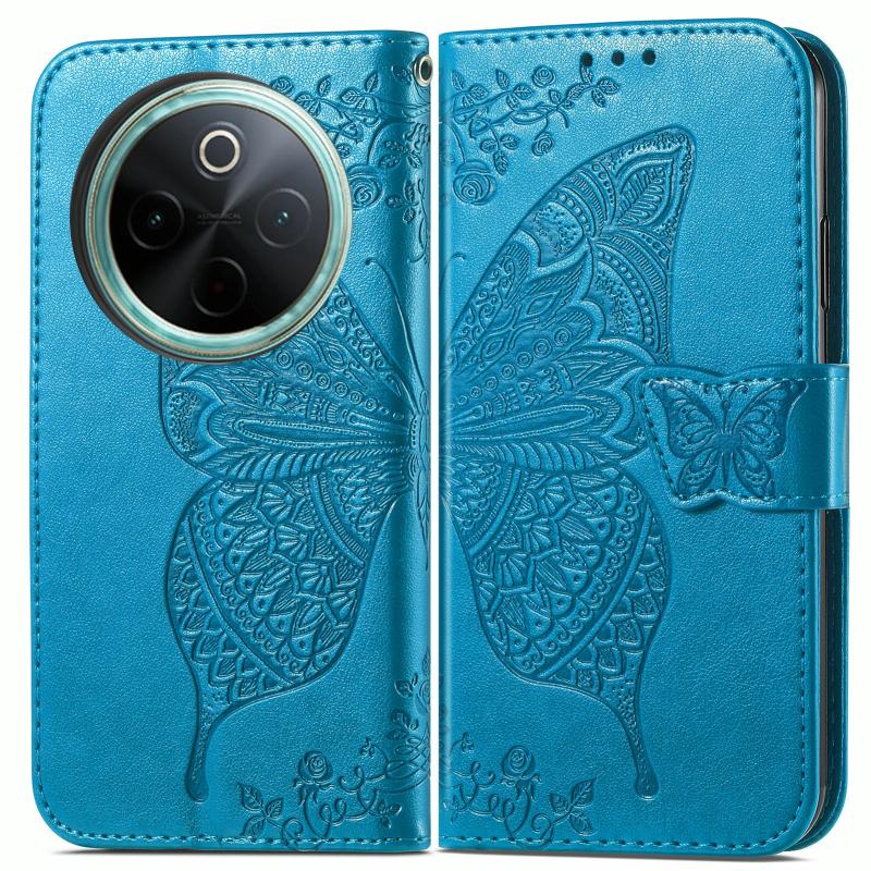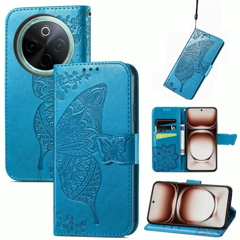 Θήκη δερμάτινη με ανάγλυφο σχέδιο πεταλούδας και λουλουδιών για vivo Y300 Pro (Μπλε)