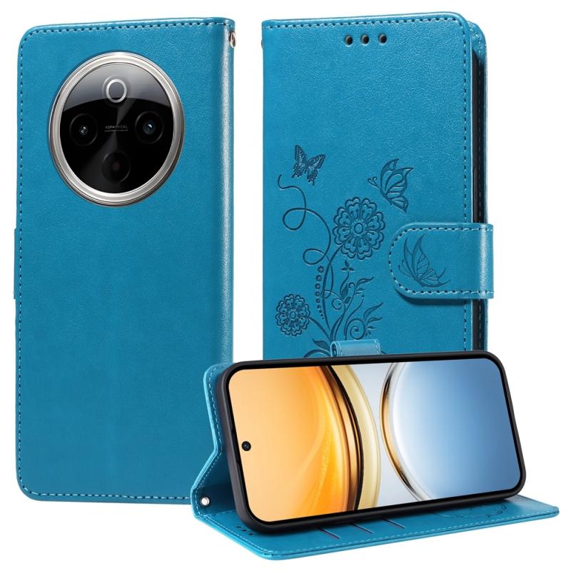 For vivo Y300 Pro Embossed Butterfly Flowers Leather Phone Case(Blue)