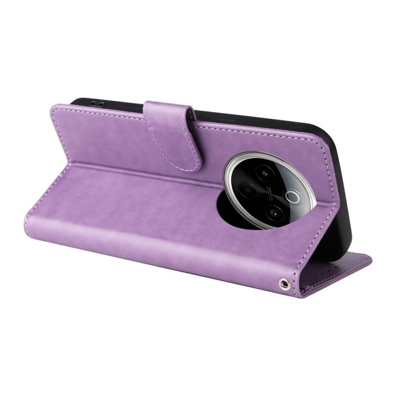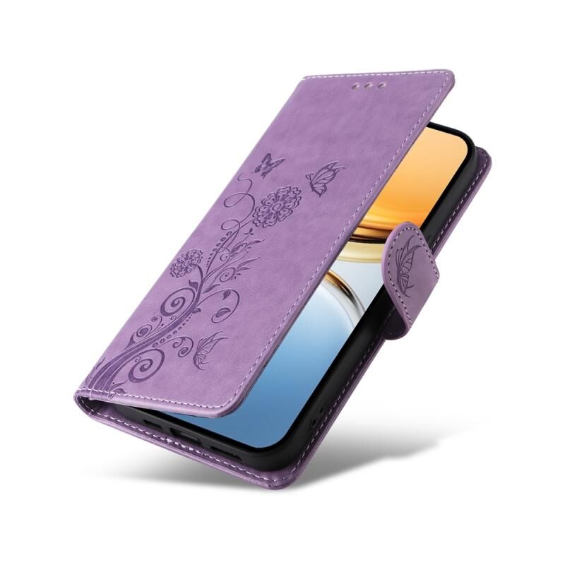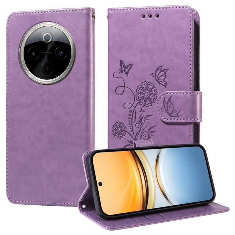 Θήκη τηλεφώνου δερμάτινη με ανάγλυφα λουλούδια και πεταλούδες για vivo Y300 Pro (Μωβ)