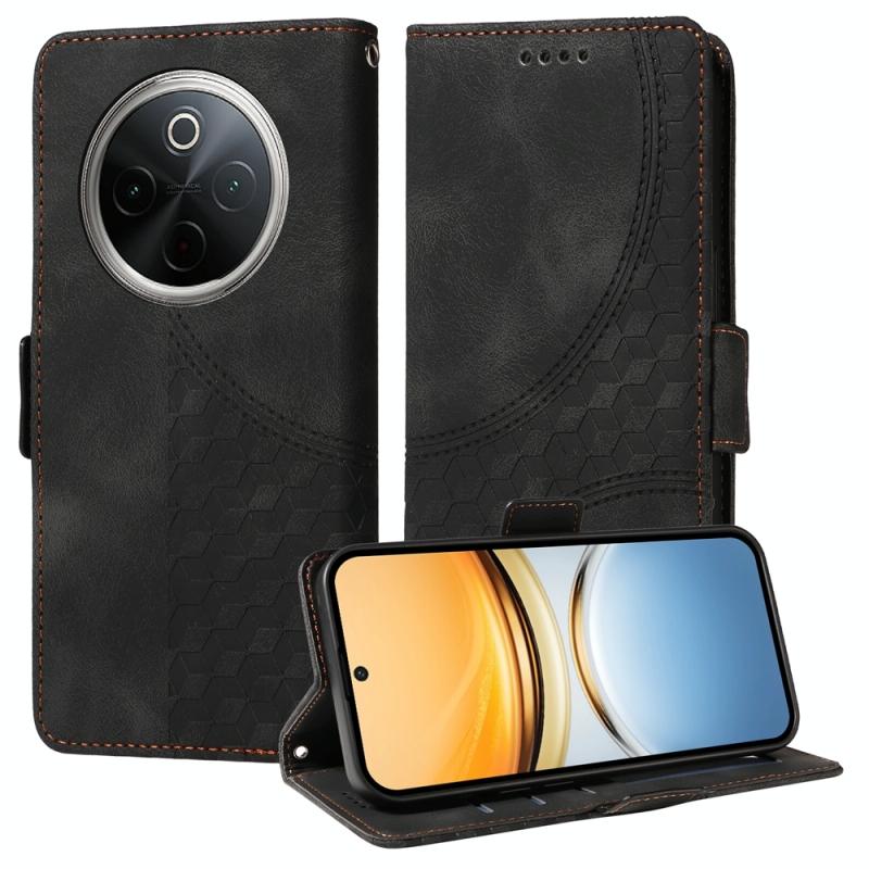 Θήκη τηλεφώνου vivo Y300 Pro ανάγλυφη με σχέδιο ρόμβου και αστέρια από δέρμα (Πράσινη)