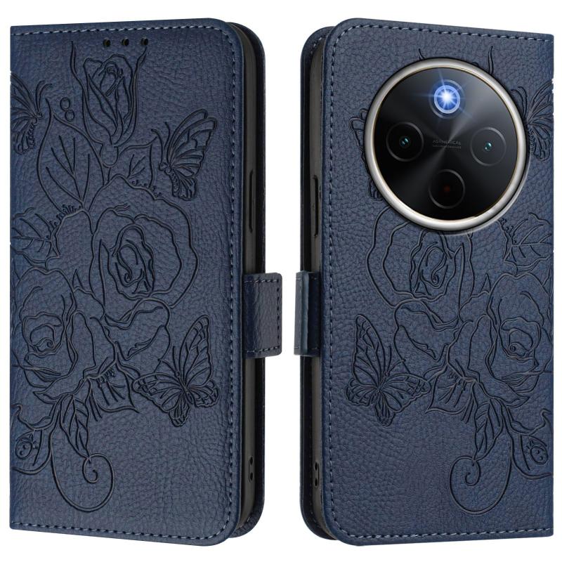 Θήκη τηλεφώνου δερμάτινη με ανάγλυφο σχέδιο τριαντάφυλλου και προστασία RFID κατά της κλοπής για vivo Y300 Pro (Πράσινη)