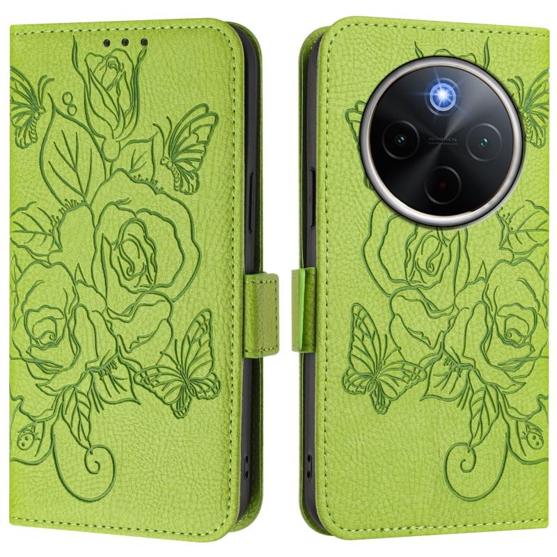 For vivo Y300 Pro Embossed Rose RFID Anti-theft Leather Phone Case(Green)