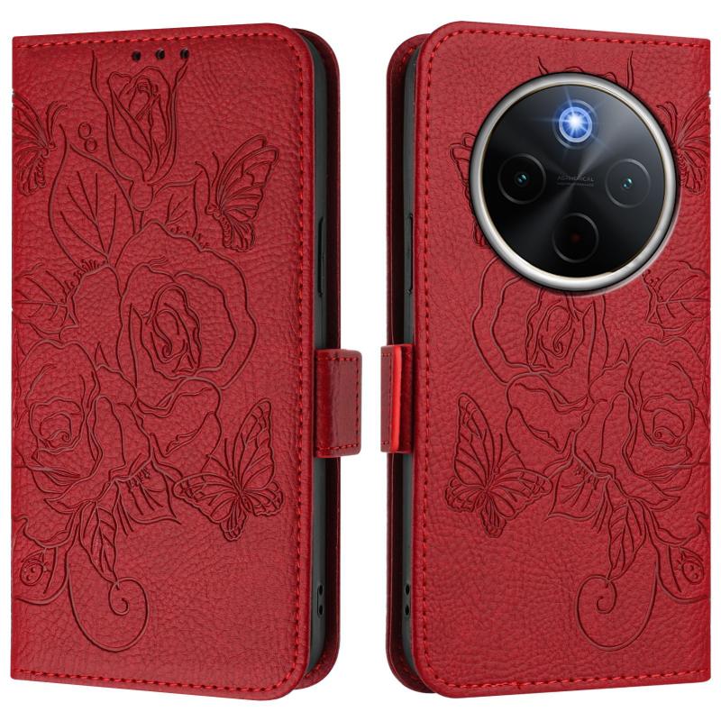 Θήκη τηλεφώνου δερμάτινη με ανάγλυφο σχέδιο τριαντάφυλλου και προστασία RFID κατά της κλοπής για vivo Y300 Pro (Πράσινη)