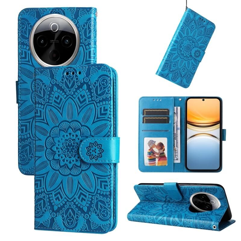Θήκη τηλεφώνου για vivo Y300 Pro ανάγλυφο δέρμα ηλιοτροπίου (Κόκκινο)