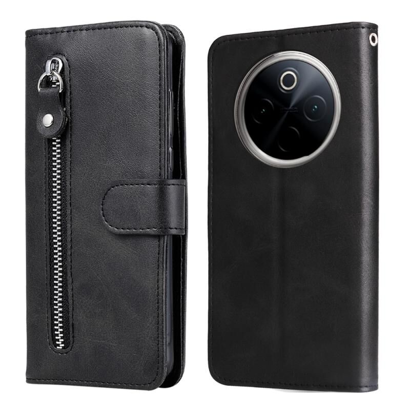 Θήκη τηλεφώνου δερμάτινη με φερμουάρ και υφή μοσχαριού για vivo Y300 Pro (Χρυσό ροζ)
