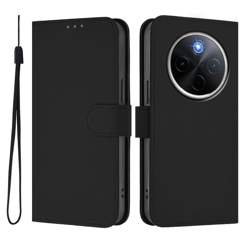Θήκη τηλεφώνου για vivo Y300 Pro με αίσθηση δέρματος, συμπαγές χρώμα, δερμάτινη με κορδόνι (Καφέ)