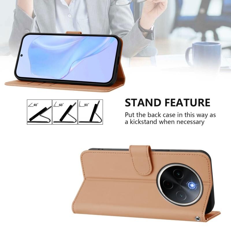 Θήκη τηλεφώνου για vivo Y300 Pro με αίσθηση δέρματος, μονόχρωμη, από δέρμα με κορδόνι (Γυμνή)