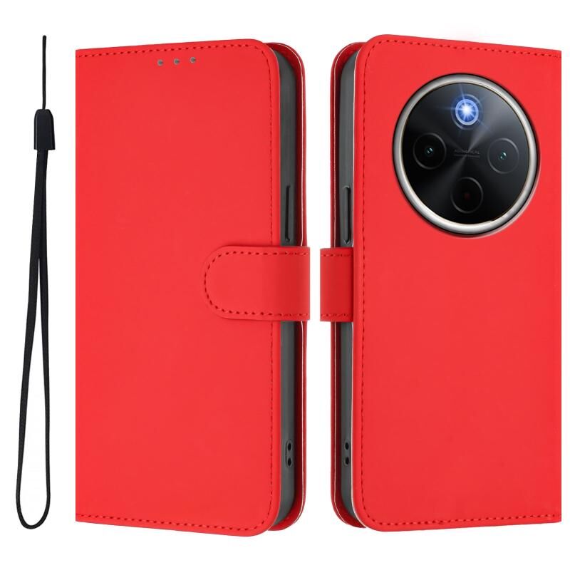 Θήκη τηλεφώνου για vivo Y300 Pro με αίσθηση δέρματος, συμπαγές χρώμα, δερμάτινη με κορδόνι (Καφέ)