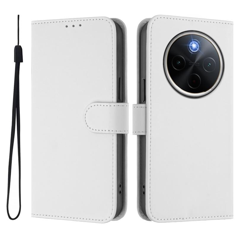 Θήκη τηλεφώνου για vivo Y300 Pro με αίσθηση δέρματος, συμπαγές χρώμα, δερμάτινη με κορδόνι (Καφέ)
