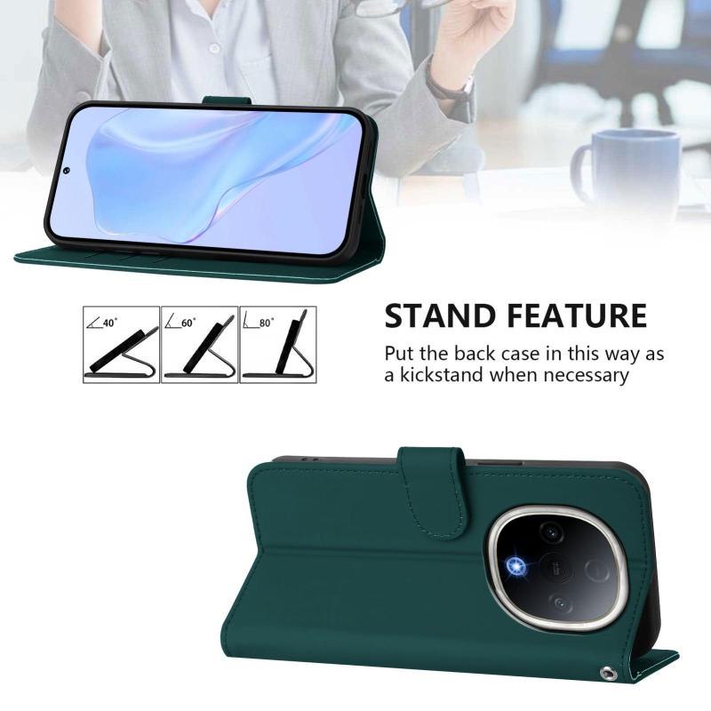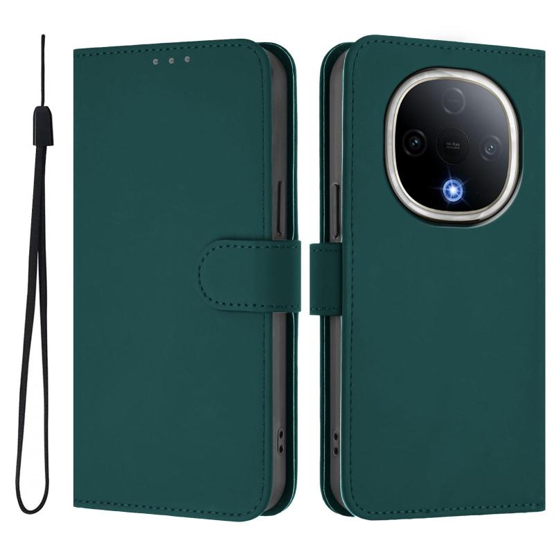Θήκη τηλεφώνου για vivo Y300 με αίσθηση δέρματος, μονόχρωμη, από δέρμα με κορδόνι (Καφέ)